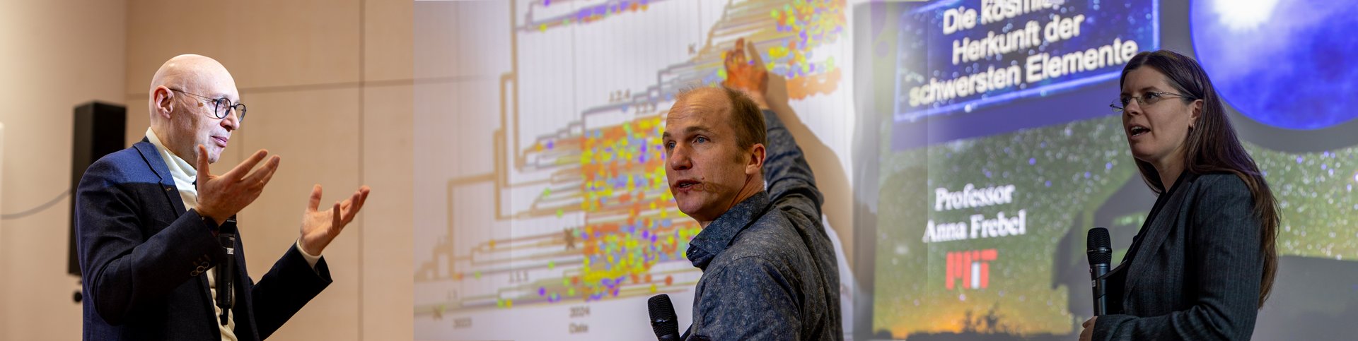 Anna Frebel vom MIT in Boston stellte die Ergebnisse ihrer Forschungen anhand der ältesten Sterne im Universum vor. Diese etwa 12 bis 13 Milliarden Jahre alten Sterne zeigen, wie die Nukleosynthese schwerer Elemente, einschließlich Spaltprozesse, in Paaren verschmelzender Neutronensterne abläuft und wie seit Anbeginn der Zeit im gesamten Kosmos schwere Elemente wie Silber, Gold und Platin entstehen.